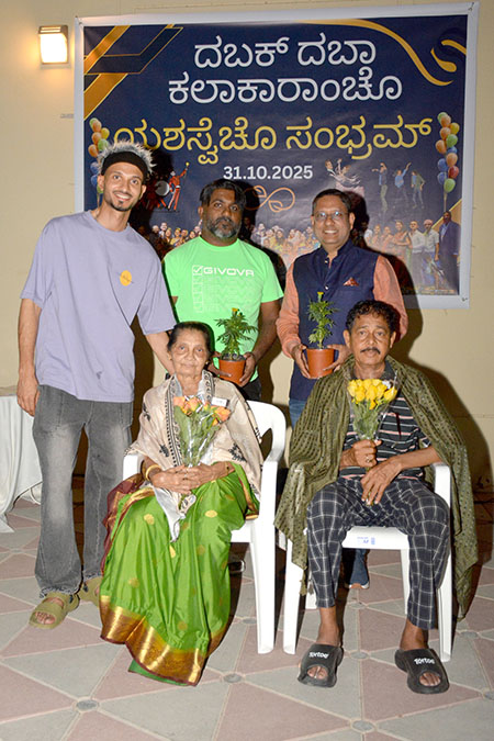 Preneta Monteiro took center stage as emcee at the formal felicitation ceremony. The senior-most members of the team, Flossie D’Souza and Thomas D’Souza — were honoured for their enduring presence and blessings. The felicitation was conducted by Vijai D’Cunha (Yezman), Raj Kiran (Gurkar), and Jason Cardoza (MC), the team’s strategist.