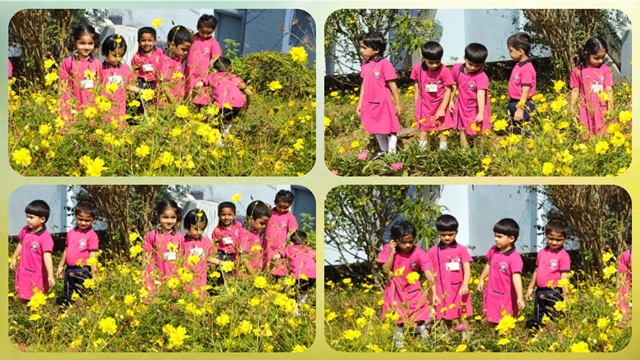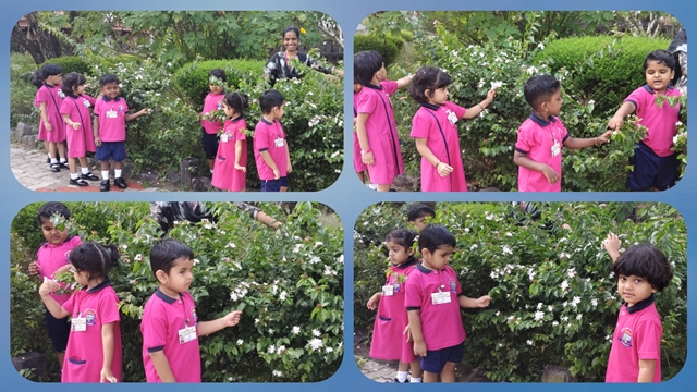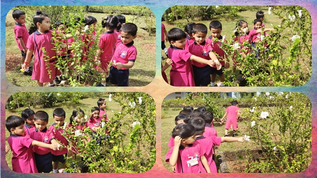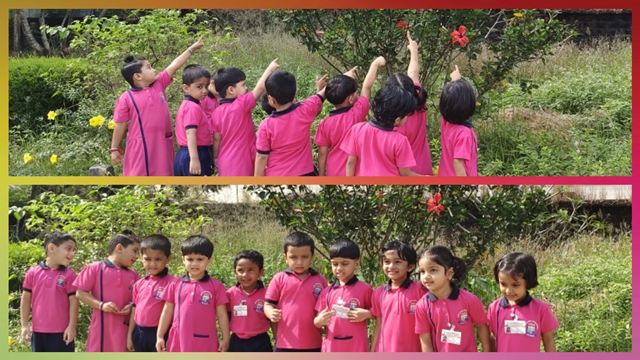 As they stepped into the nature, the children joyfully spotted these colours in different plants and flowers around them, and enjoyed the beauty of nature all around, connecting the classroom learning with the world outside.