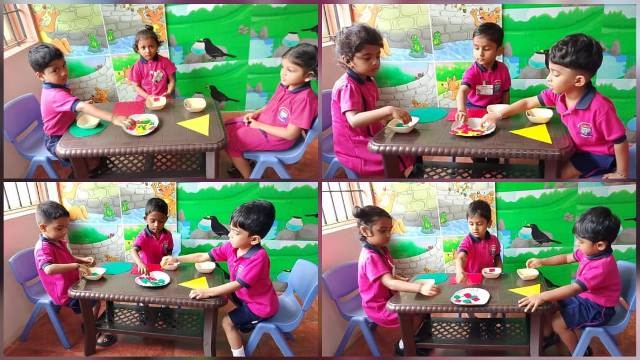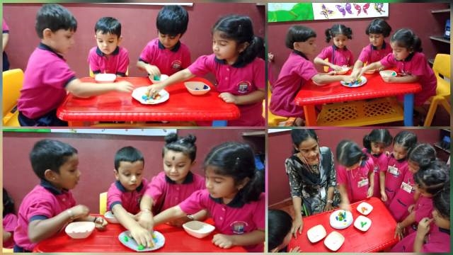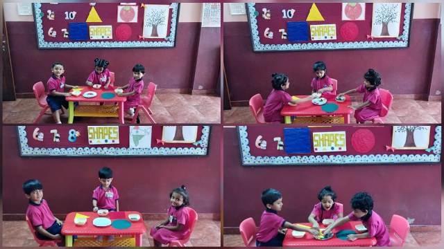 Next came the world of shapes! The children sorted circles, triangles and squares into corresponding bowls, building problem-solving skills and spatial awareness. They also played shape and colour-matching games, which reinforced what they had learned in a joyful and interactive way.