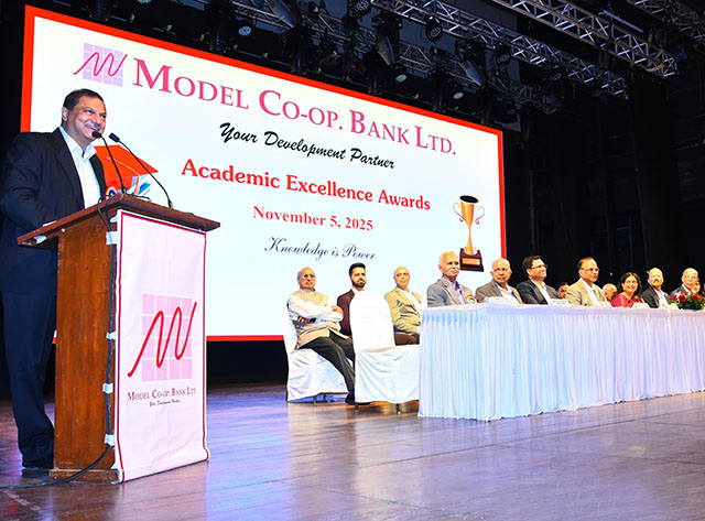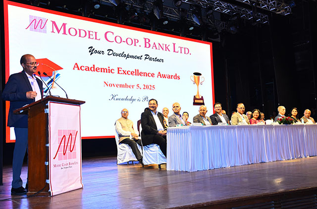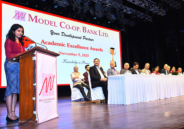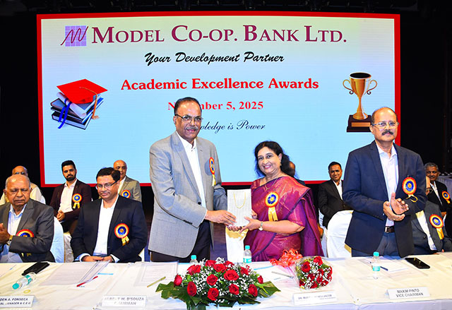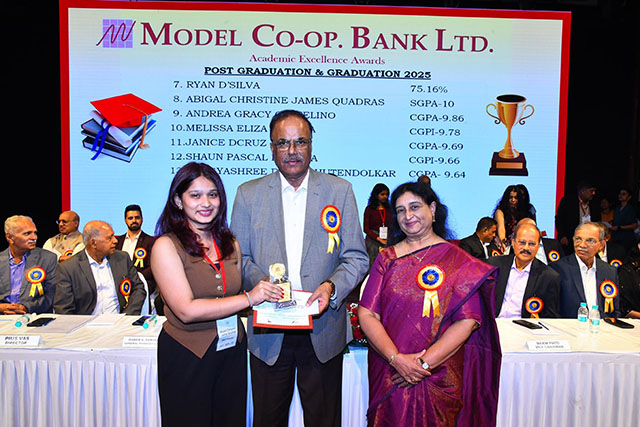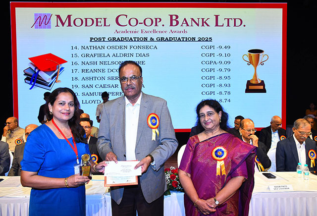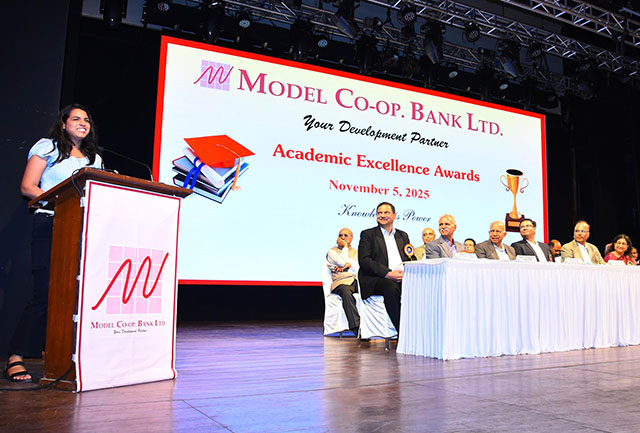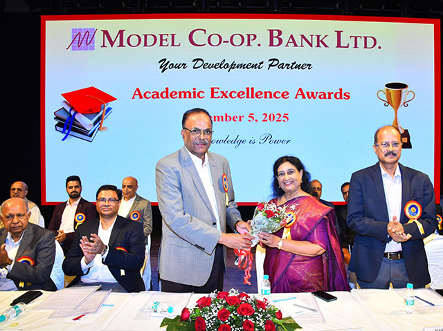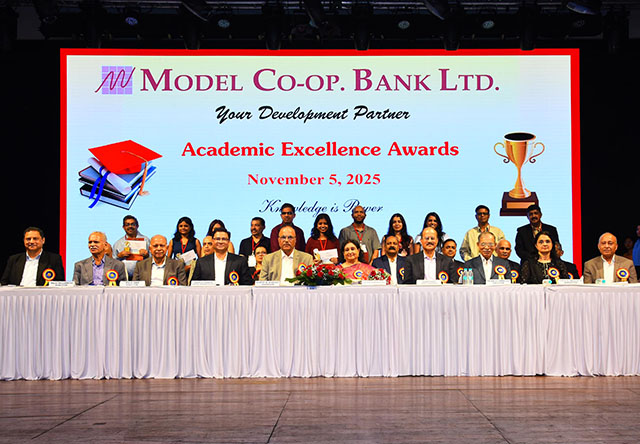 Mumbai, Nov 6: Model Co-operative Bank Ltd organized its academic excellence award function to honor the outstanding children of its members for the academic year 2024-25. The event was held on Wednesday, November 5, at St Andrew’s Auditorium, Bandra, recognizing 71 deserving scholars from class 10 to various fields in the post graduate levels. This initiative reflects the bank's commitment to recognizing the hard work, perseverance, and achievements of these students, fostering a spirit of excellence through this annual ceremony.