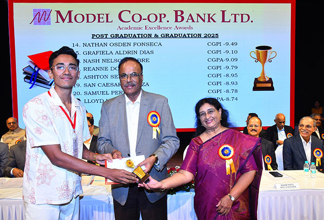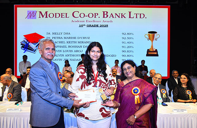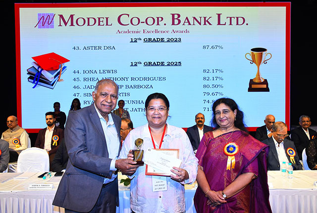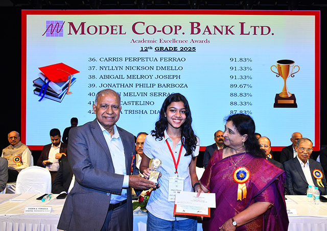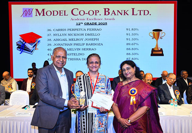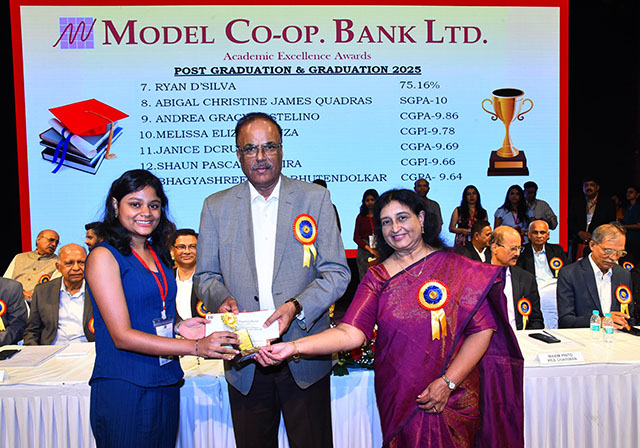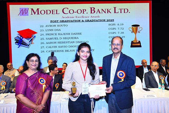 Chairman Albert W D’Souza delivered the welcome address, he shared a brief history of Model Co-operative Bank Ltd. He highlighted the Banks continued commitment to education by offering easily accessible loans to the students to pursue their dreams without financial barriers. He urged students to take advantage of the vast educational opportunities available today, especially through minority colleges offering numerous professional courses. Encouraging lifelong learning, he advised, ‘Continue studying till at least the age of 25 since education gives the confidence to walk into any career', Concluding his speech, the chairman shared words of wisdom: “Hard work, Knowledge and Attitude, which are the three pillars of success." He also informed the students to remember that time, energy and money never come together, so to use each wisely in life’s journey.