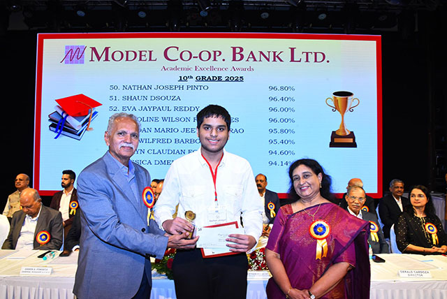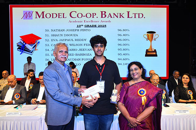Vice chairman Maxim I Pinto also addressed the gathering, sharing inspiring words of encouragement. He congratulated students for their hard work and praised parents and teachers for their support. He highlighted the bank’s 25-year journey of continuous profits, RBI recognition for Financially Sound and Well Managed Bank, and 70% digital adoption. Emphasizing teamwork and community values, he urged students to 'keep learning and growing'. He also invited them to explore the bank’s education loans.