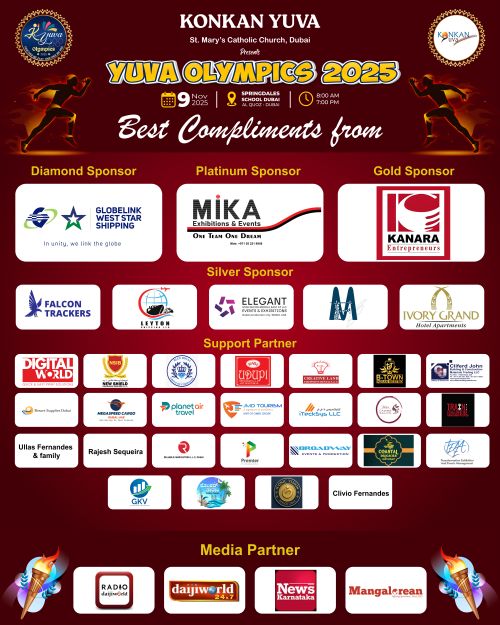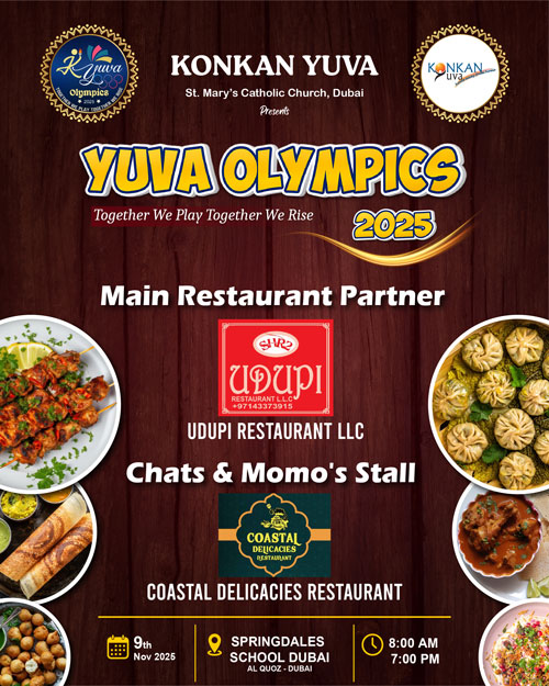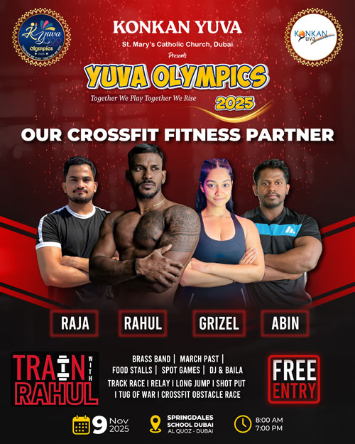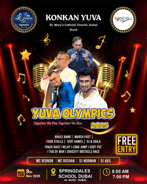 Dubai, Nov 7: The excitement is reaching its peak as Konkan Yuva, the dynamic youth wing of the Konkani community of St Mary’s Catholic Church, Dubai, gears up for the inaugural Yuva Olympics 2025 a first-of-its-kind mega community sports and cultural event set to take place on Sunday, November 9, from 8 am to 7pm at Springdales School, Al Quoz, Dubai.