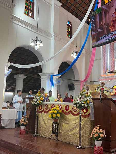The solemn Holy Mass was officiated by Fr Maxim Rosario, estate manager of the Mangaluru diocese, who served as the main celebrant. Fr Patrick Siqueira, parish priest of Barimar church, and Fr Cyril Dais from the Hyderabad diocese were also present for the religious ceremony.