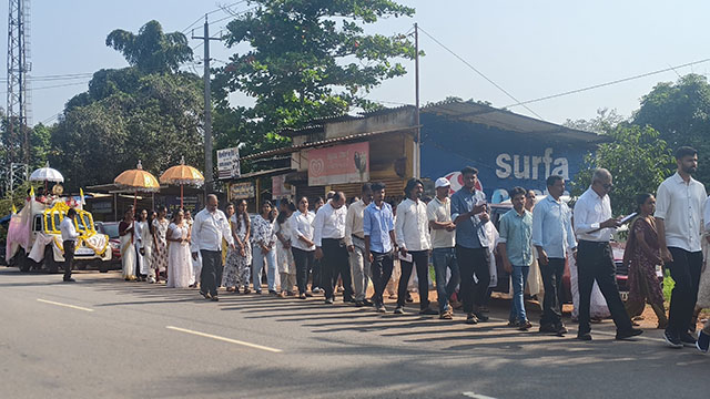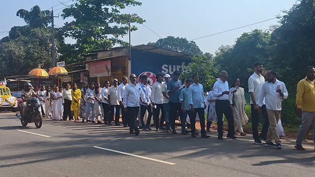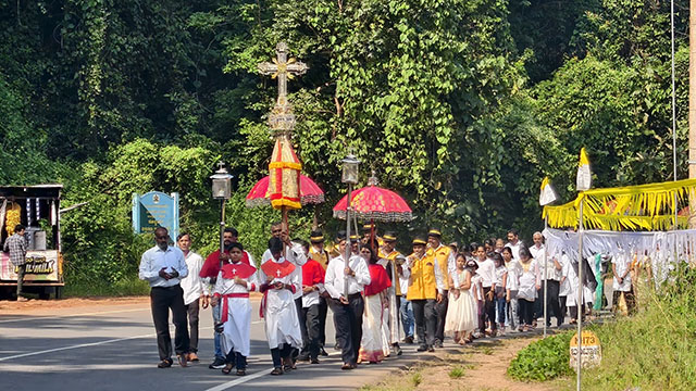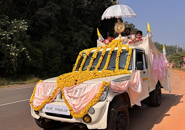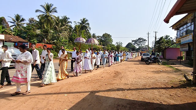 Following the Holy Mass, a solemn Eucharistic procession was held, carrying the Blessed Sacrament reverently through the church locality—from the church to Kadabettu Cross and back through the main entrance. During the procession, hymns were sung in Kannada and Konkani, filling the atmosphere with devotion and praise to the Holy Sacrament.