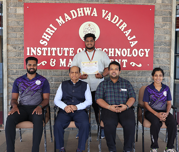 Udupi, Nov 11: Laxmeesh V, a second-year Computer Science engineering student of Shri Madhwa Vadiraja Institute of Technology and Management (SMVITM), Bantakal, brought laurels to the institute by winning the gold medal in the VTU State-level Powerlifting (Men) championship.