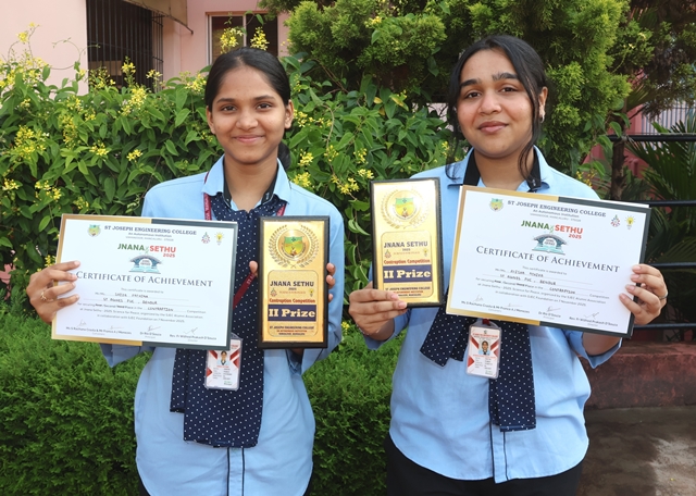 Students of St Agnes Pre-University College, Mangaluru, brought laurels to the institution by winning several prizes at Jnana Sethu 2025 – Science for Peace, held at St Joseph’s Engineering College on November 7.
