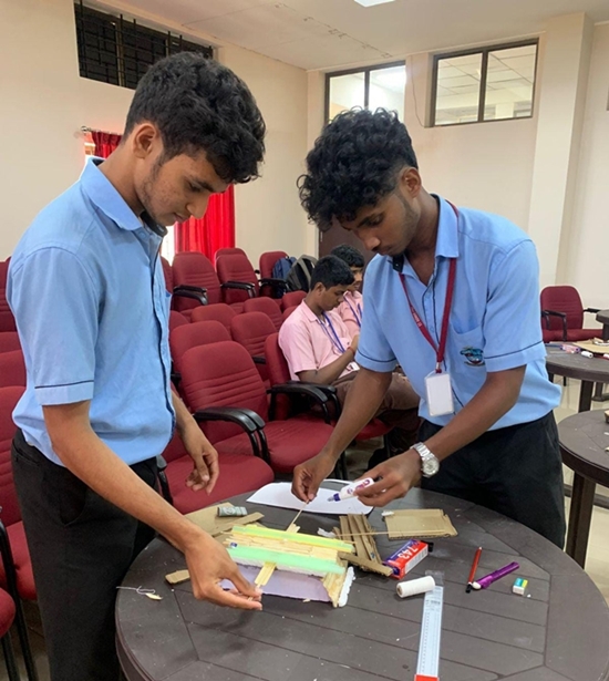 In the Load Up Competition, Vaibhav Acharya and Mohith Naik (I PCME ‘C’) won first place, and in the Contraption Competition, Ayisha Athika (I PCMB ‘C’) and Shiza Fathima (I PCBH ‘E’) secured second place.