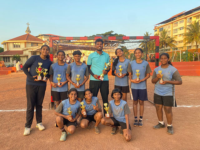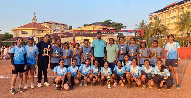 The under-14 team, comprising Amruth Mariet Sequeira (8A), Steffi Sansha D’Souza (7A), Aadhya K (8D), Ruth Sania D’Souza (7D), Thasvi S K (8C), Joella Adlyn D’Cruz (6D), Vaisnavi M (8A), Niyati V S (6D) and Rishika Jayaraj Bangera (7D), exhibited remarkable coordination and strategic play to secure the runners-up position. Notably, Aadhya K was awarded the best goalkeeper trophy for her exceptional skills and crucial saves that significantly contributed to the team’s success.