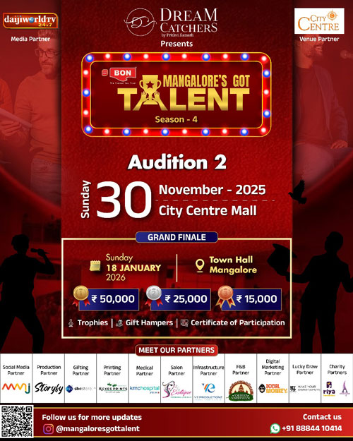 Mangalore’s Got Talent Season 4 is not just a talent contest. This edition aims to showcase cultural richness, honour artists contributing to Mangaluru’s art ecosystem, and foster a stronger sense of community celebration. The event promises a larger platform, greater visibility, and an unforgettable experience for participants and audiences alike.