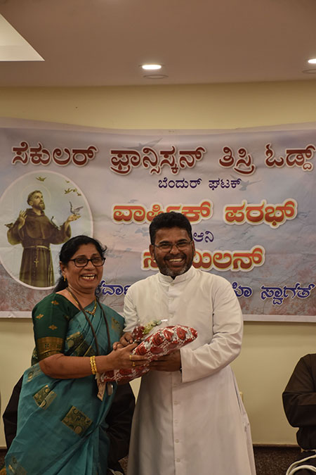 Shanthi Menezes, president of the SFO (Bendur Unit), extended a warm welcome to all gathered. The dignitaries present included: Fr Walter D’Souza, vicar & spiritual director, Fr Prakash Lobo, Spiritual director, Karnataka OFS Province, Fr Alban D’Souza, Denis Fernandes, president, SFO Province, Cynthia Rosario, province secretary, Walter D’Souza, province vice president, Allwyn Monteiro province treasurer, Philomena D’Souza, province formator, Vinod D’Souza, vice president, parish pastoral council, Patsy Britto, secretary, parish pastoral council and Fr Vivek Pinto, assistant parish priest.