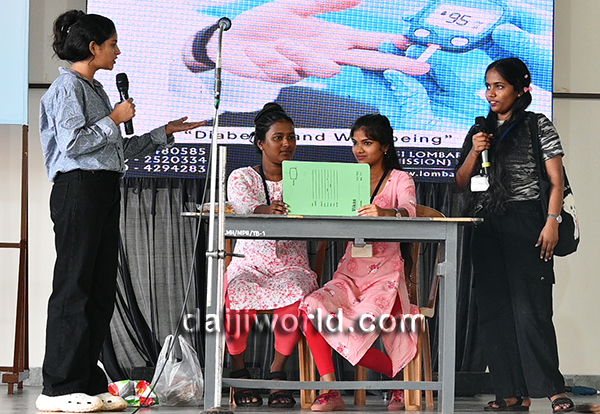 Role plays, mad-ad and mime show on the theme of diabetes by the students of CSI Lombard group of Institutions were performed to emphasize the importance of awareness and early detection of diabetes.