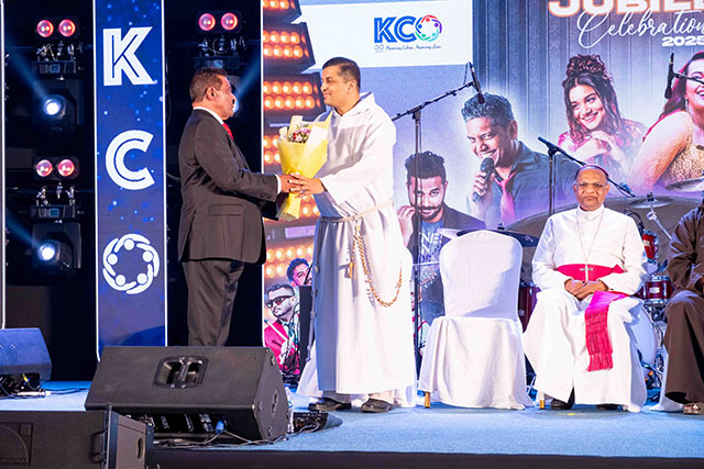 The event also featured a stand-up comedy performance by Nitesh Shetty, who had the audience in splits with his hilarious jokes and anecdotes. The Pearl Jubilee memorial souvenir was released by the chief guest, a buffet was served to all and the evening ended with Laudate by KCO members.