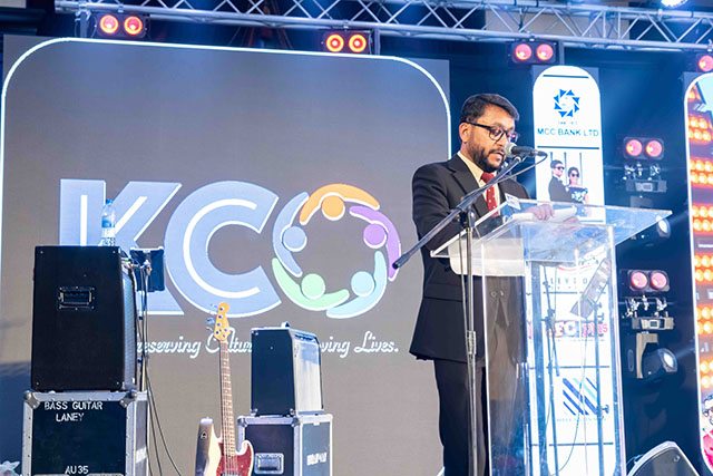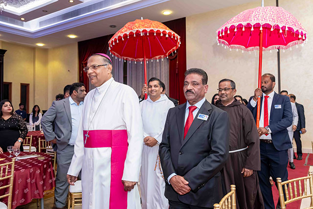 The dignitaries, including the platinum sponsors, gold sponsors, and managing committee members, were welcomed with flower bouquets, and the president Leo Rodrigues delivered a speech highlighting KCO's achievements over the years. The bishop felicitated the present and founder president Leo Rodrigues, past presidents, past secretaries, past treasurers and members, as well as platinum, gold, silver and support sponsors, in recognition of their contributions to the organization.