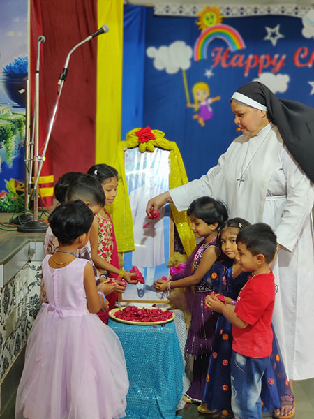 The event concluded with an inspiring message by the principal Sr Letitia AC, who appreciated the teachers and blessed the children, urging them to grow with confidence, joy, and compassion. Her words resonated warmly with the audience. The programme was hosted with poise and clarity by Tr Mary, ensuring a smooth and engaging flow throughout the celebration.