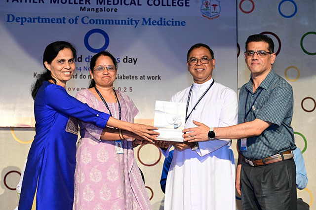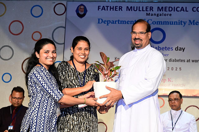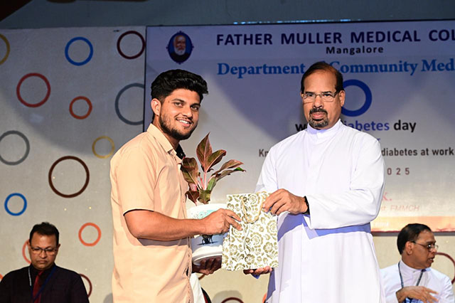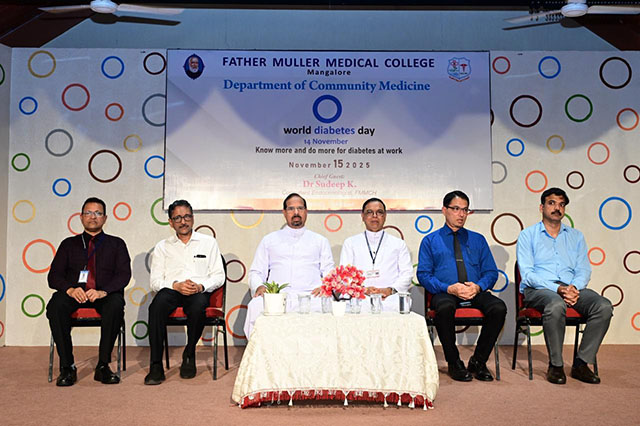 Mangaluru, Nov 15: The Father Muller Charitable Institutions (FMCI) hosted the valedictory ceremony of the World Diabetes Day campaign on November 15. The week-long observance, organised by the Department of Community Medicine, culminated in a meaningful gathering that highlighted workplace well-being and the importance of preventive health.