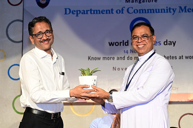 In his welcome address, Dr Sudhir Prabhu, head of the Department of Community Medicine, stressed the relevance of observing World Diabetes Day, noting that India continues to bear the burden of being known as the “Diabetes Capital of the World,” with numbers rising steadily. “Globally, seven in ten adults living with diabetes belong to the working-age population — that’s over 142 million individuals. For many, diabetes is a daily challenge, and in workplaces it often becomes a source of stress, stigma, and fear,” he remarked.