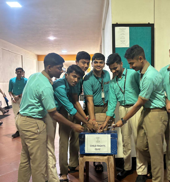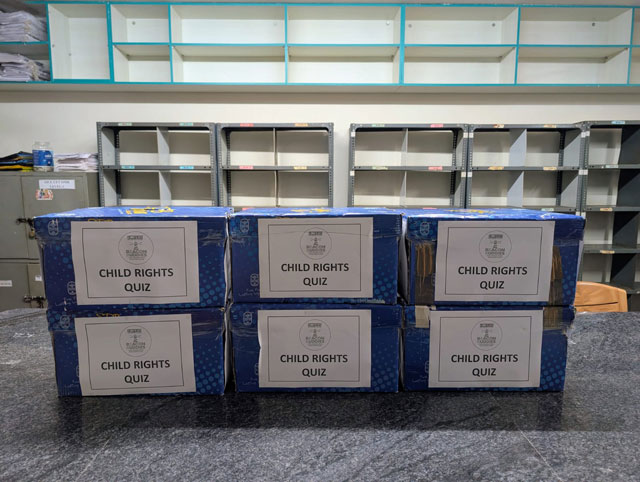 Instead of the traditional quiz setup, questions on child rights were displayed on classroom notice boards during the given time. Students were instructed to record their answers and drop them into specially labeled answer boxes placed outside their respective classrooms. This creative method generated tremendous interest and resulted in 1,190 students taking part in the competition. Among them, 87 students achieved a perfect score, reflecting both enthusiasm and awareness among the student community.