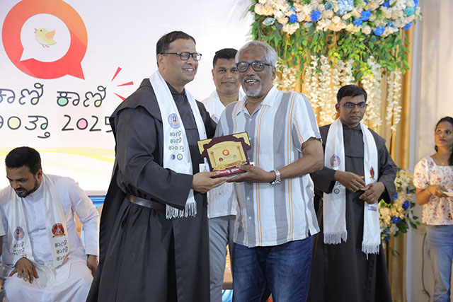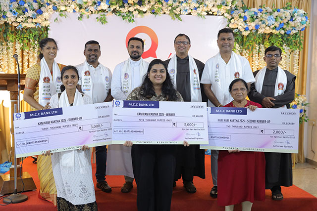 The prize distribution ceremony, held at 4 pm, was presided over by Fr Rupesh Madtha, while noted poet and film director Stany Bela was the chief guest. Other dignitaries on the dais included Fr Melvin D’Cunha, superior of St Joseph’s Monastery; Praveen Tauro; shrine director Fr Stifan Perera; Fr Joseph Cyril D’Souza, president of Daij Dubai Mangalore Unit; writer Flavia Albuquerque; and Fr Ivan D’Souza, editor of NBJ.