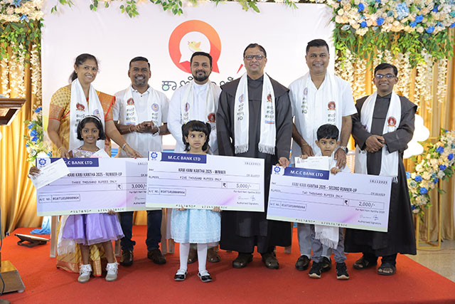 Mangaluru, Nov 17: The grand finale of Kani Kani Kantha 2025, a popular Konkani storytelling competition, was held on Sunday, November 16 at 2 pm at the Infant Jesus Shrine Hall, Mangaluru. The event drew an enthusiastic audience of participants, parents, well-wishers, and admirers of Konkani literature.