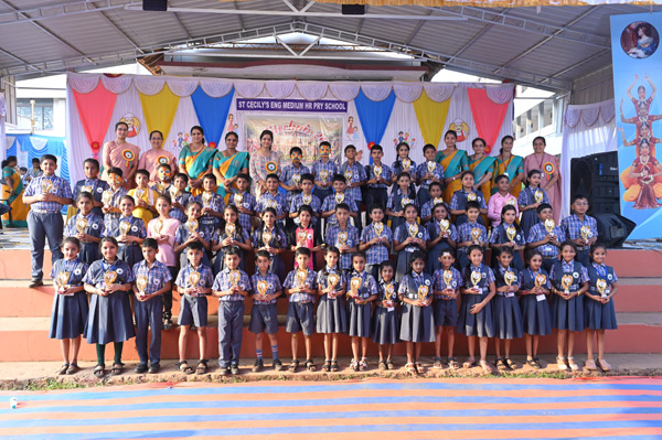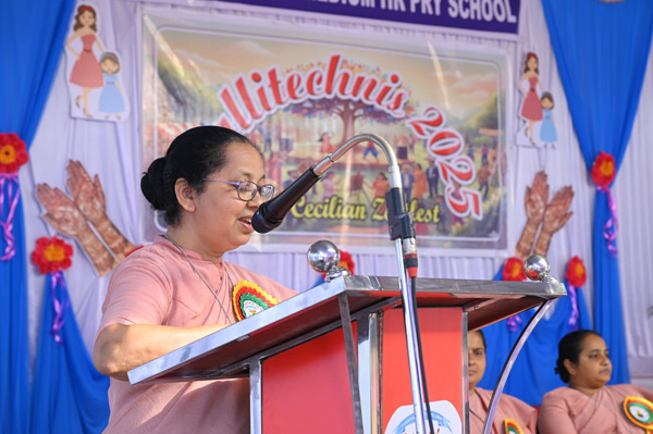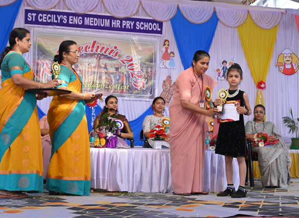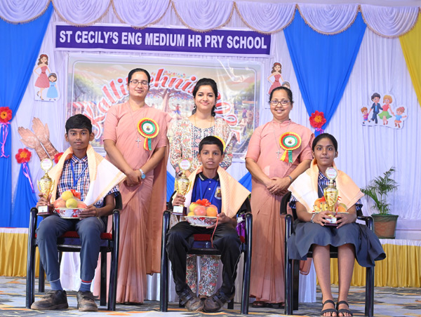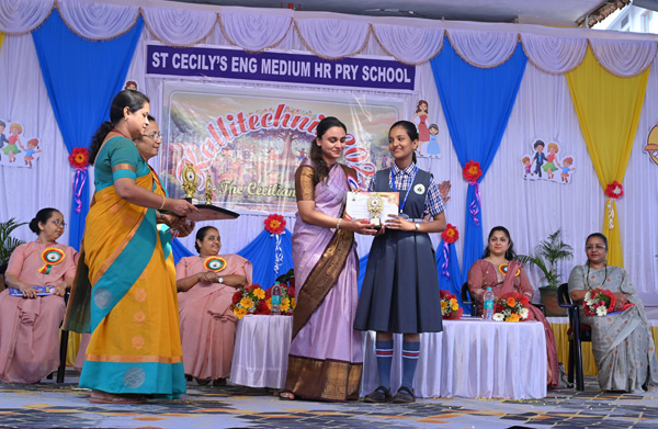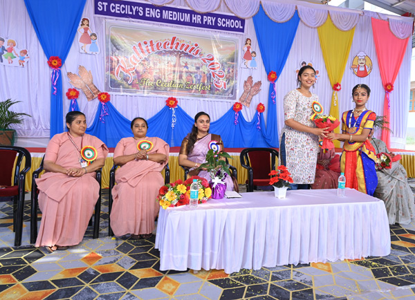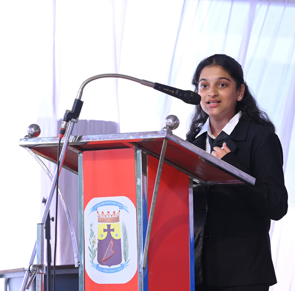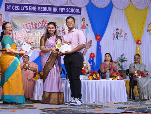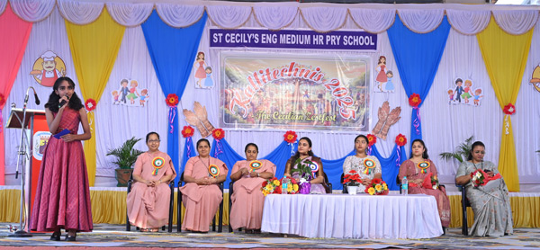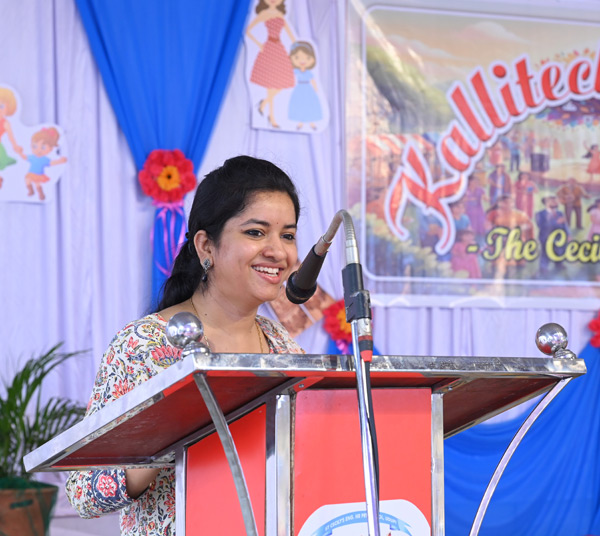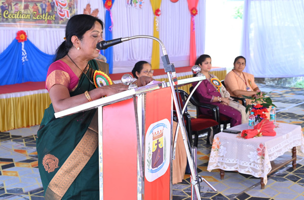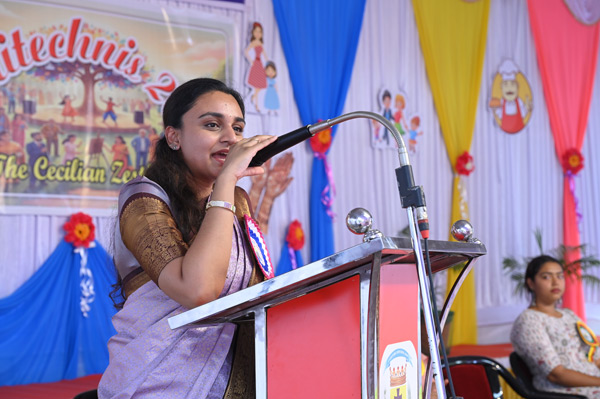 In her inspiring message, she too reminisced the unforgettable days as a student at St Cecily’s and expressed her gratitude to the school and teachers. She further encouraged students to make the best of such events organized by the school as they too form a part of the foundational block which helps develop the necessary soft skills such as team spirit, oratory skills, collaboration skills much needed to be successful in the present scenario. She also offered a gentle word of caution that AI which if used unwisely could rust creative thinking abilities.