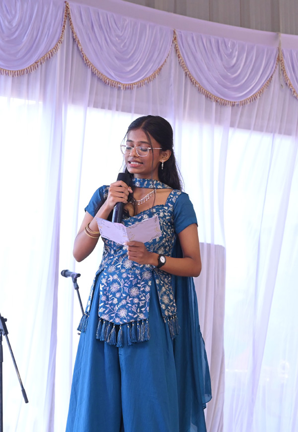 The skilled masters of ceremony, Tejasvi, Khusi, Joslin, Pavani, Thanvisha, Sharly, Ancilla, Pranathi, Rolvita, Gagan and Tejas beautifully compered the inaugural and valedictory programmes adding charm and coherence to every segment of the programme.