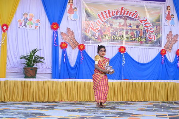 The grandeur of the inaugural ceremony on November 14 was showcased by a short, colourful and lively procession from the school gates. The Inaugural Chief guest, Manisha Kiran, - renowned cosmetologist and proud alumnus was ceremoniously escorted to the vibrant stage by the principal Sr Lathika AC, joint secretary Sr Preethi Crasta AC, superior of St Cecily’s Convent and Kindergarten coordinator St Priya AC accompanied by the elegant school band, energetic chende players, vibrant dancing mascots proud school cabinet leaders, parents, alumni members, faculty. The school head boy and head girl led the procession carrying the fest’s banner - KALLITECHNIS 2025 - The Cecilian Zestfest.