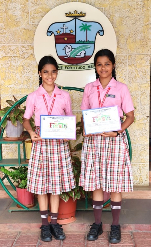 In another commendable accomplishment, the talented sibling duo Anshiya George (VIII C) and Anshel George (IX A) secured first place in the event Dynamic Duos at Explora Fiesta 2025, hosted by Father Muller Homoeopathic Medical College, Deralakatte, from November 14 to 16, 2025. Their creativity, coordination and confident presentation set them apart, earning high appreciation from judges and participants alike, along with a well-deserved cash prize.