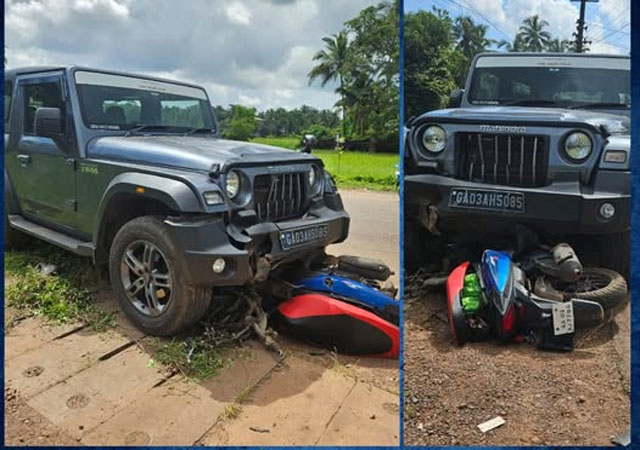 Panaji, Nov 18: In yet another disturbing case of tourist recklessness on Goan roads, a rent-a-car Thar jeep allegedly driven by a visitor rammed into a two-wheeler at Parra on Monday morning, leaving a brother–sister duo seriously injured. The driver fled immediately after the crash, further fuelling public outrage over the growing menace of unruly tourists.