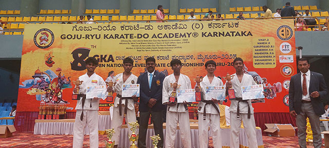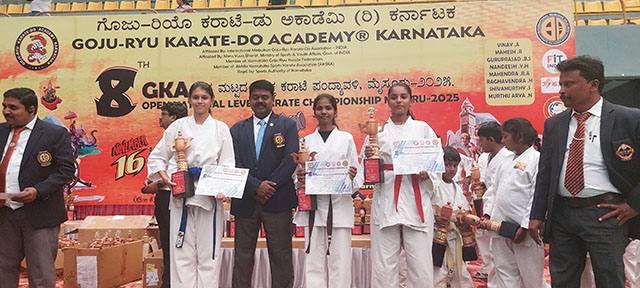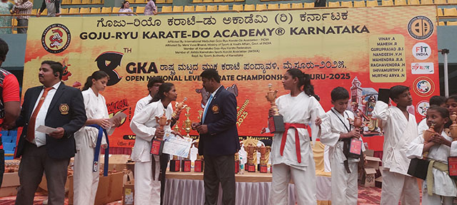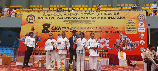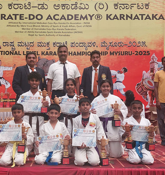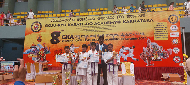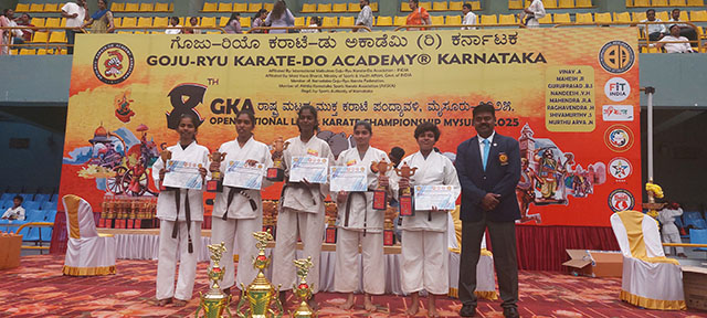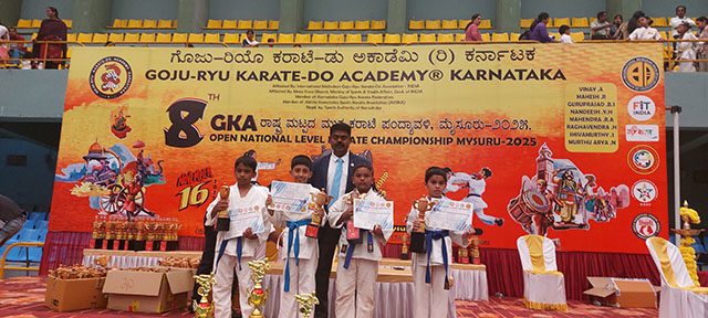 Mangaluru, Nov 19: Sensei Keval Kumar, chief instructor of ‘School of Karate-Do – The Way of Self Defence’, led a talented team to a strong finish at the 8th GKA Open National-level Karate Championship held on November 16 at Chamundi Vihar Indoor Stadium, Mysuru.