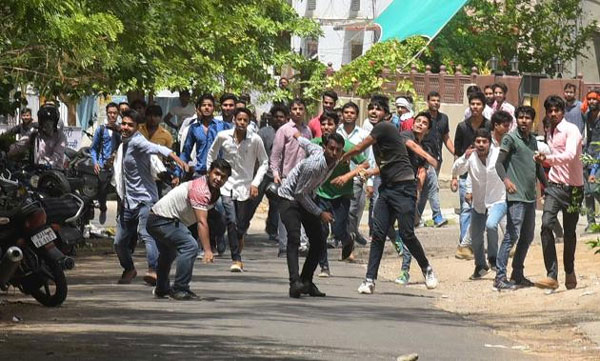 Jaipur, Nov 19: Tensions flared at the Rajasthan University campus on Wednesday after police resorted to lathi-charge to break up student demonstrations over alleged discrepancies in exam results and the evaluation system.