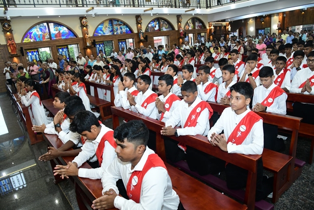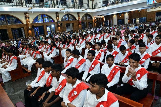 Children who secured high marks in catechism were honoured by the Bishop with a memento. Jessica D’Souza shared her heartfelt experience on behalf of the 90 children, expressing her joy in receiving the sacrament of confirmation and thanking all the teachers who guided and prepared them.