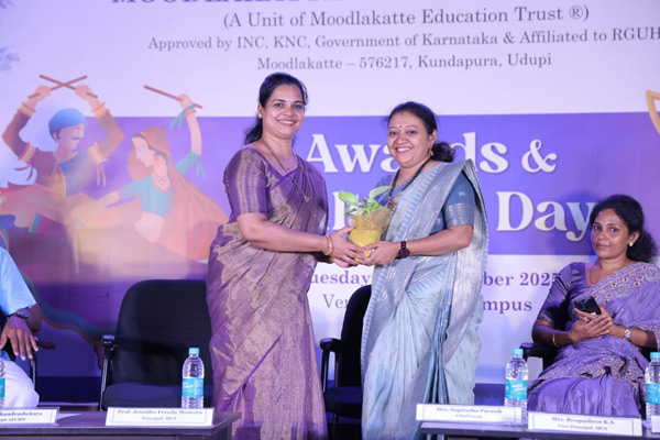 Kundapur, Nov 21: The Annual Day of Moodlakatte Nursing College was celebrated with great enthusiasm on November 18. The programme commenced with a prayer, followed by the inauguration by the chief guest, Prakash Shetty, principal, Government PU College (KPS), Koteshwar. In his address, he highlighted the significance of extracurricular activities alongside academics, encouraging students to actively participate in cultural events, sports, and other co-curricular engagements rather than restricting themselves to studies alone.