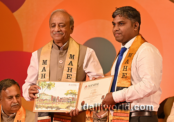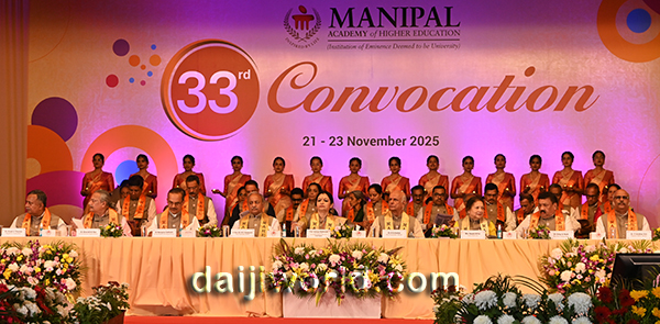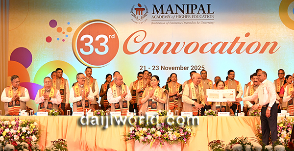 Udupi, Nov 22: Manipal Academy of Higher Education (MAHE), Institution of Eminence Deemed to be University, celebrated its 33rd Convocation at Manipal on Friday November 21, with the ceremony that witnessed MAHE’s commitment to nurturing skilled graduates, fostering innovation, and promoting excellence across disciplines. On day one, 1,648 students received their degrees, including 64 PhD awardees, while four exceptional students were honoured with the prestigious Dr TMA Pai Gold Medal.