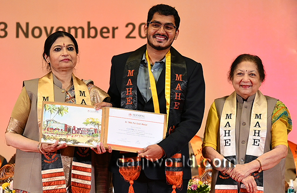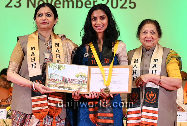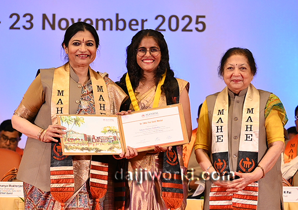 Building on this vision of excellence and innovation, the ceremony also recognized individual achievements, honouring four outstanding students with the prestigious Dr TMA Pai Gold Medal 2025. Ponnamma M M (MSc Medical Biotechnology, MSLS Manipal), Nikita Marina Saldanha (BPharm, MCOPS Manipal), Cyril Biji (MSc Biostatistics, PSPH Manipal), and Vindhya S Badal (BSc Clinical Nutrition & Dietetics, MCHP Manipal) were recognized for their exceptional contributions and exemplary performance in their respective fields.