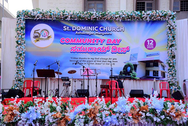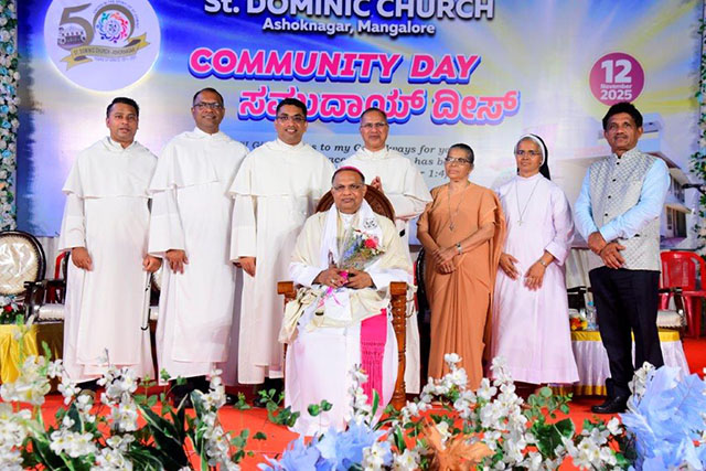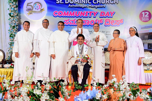 Following the mass, the bishop blessed and inaugurated the St Dominic Church Golden Jubilee Building. The event also included the ‘Pratibha Puraskar – 2025-2026’, recognising academic achievers from 10th standard, II PUC, graduation, post-graduation, and professional studies.