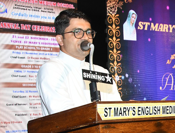 Udupi, Nov 22: The Annual Day celebration of St Mary’s English Medium School for play school to grade 2 was held on November 21 and grades 3 to 6 in the St Mary’s Auditorium, marked by joy, enthusiasm and active participation from students, staff and parents.