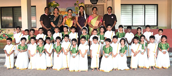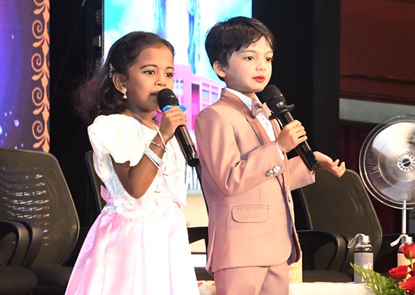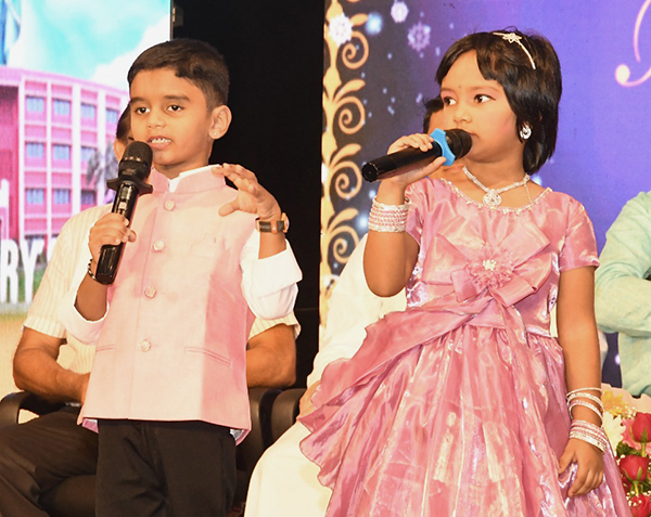 The formal stage programme commenced with a warm welcome address by Dhanush and Hanvika from UKG, who extended greetings to the dignitaries, parents and well-wishers. The event was skilfully anchored by the young MCs Anvay and Dhanvika of UKG.