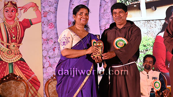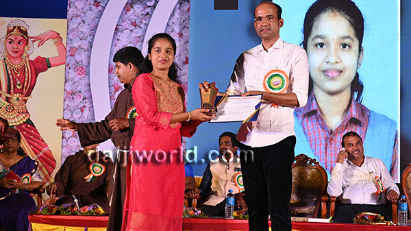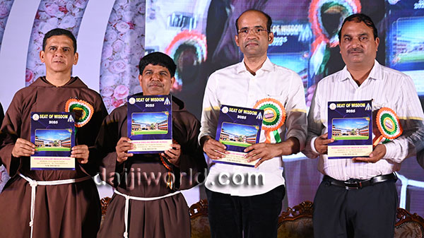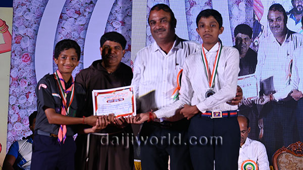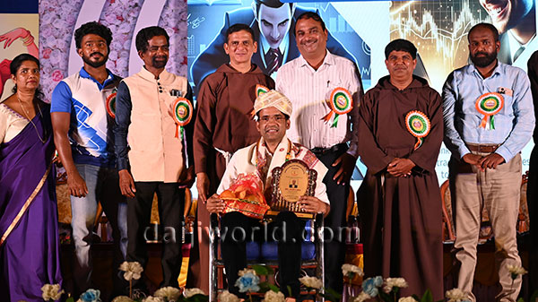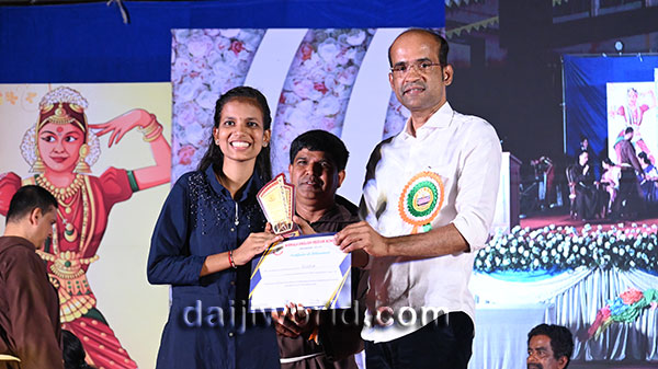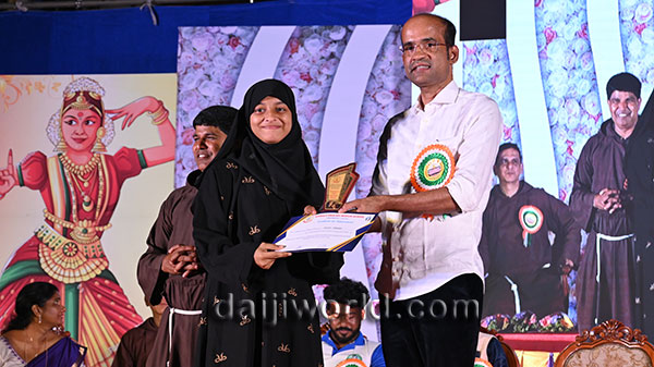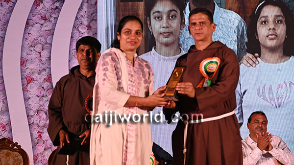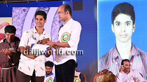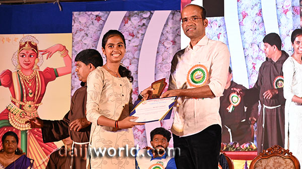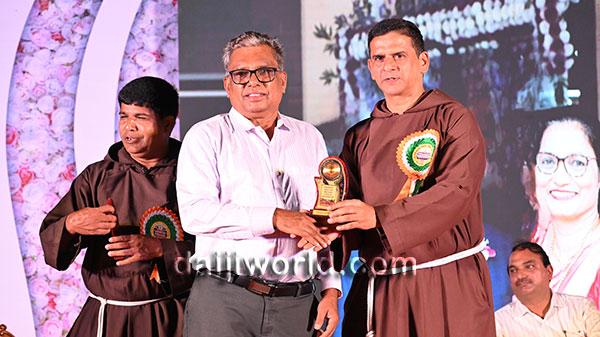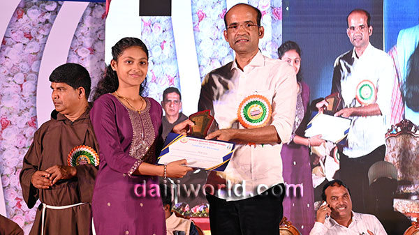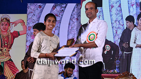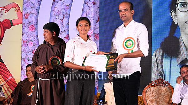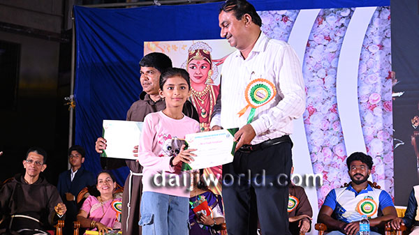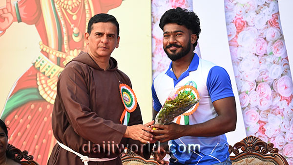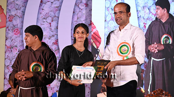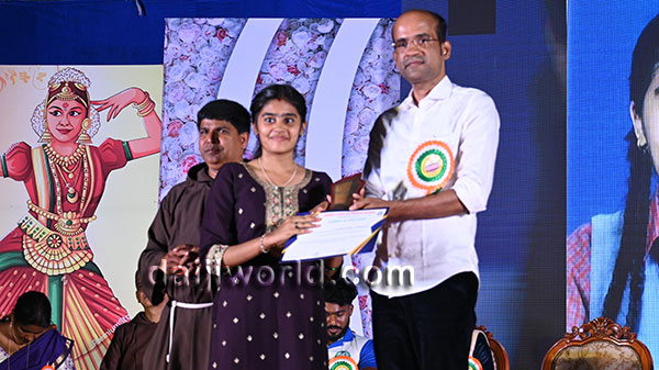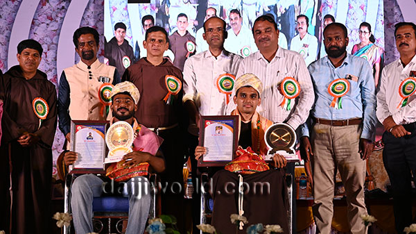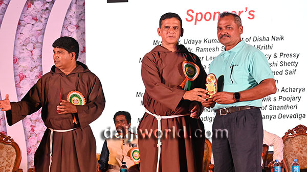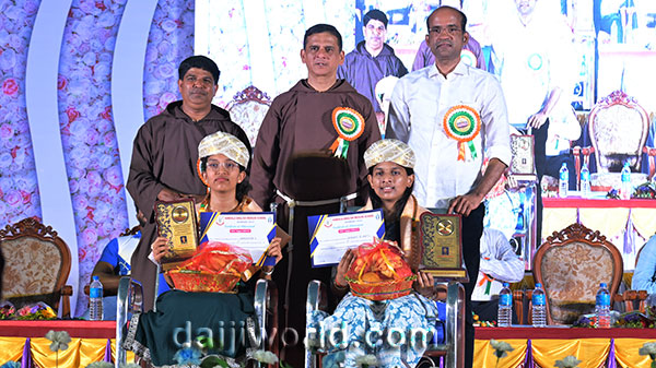 A felicitation ceremony followed, honouring Johnson D'Almeida and Umesh Poojary for their contributions to society. Proficiency award achievers Samruddhi V Shetty and Samanvitha were also felicitated along with student achievers for excellence in academics and co-curricular activities.