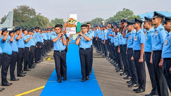 Shimla, Nov 23: The mortal remains of Indian Air Force (IAF) pilot Wing Commander Namansh Syal, who lost his life in a Tejas fighter jet crash during the Dubai Air Show, were brought to his native Himachal Pradesh on Sunday and cremated with full military honours.
