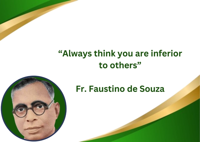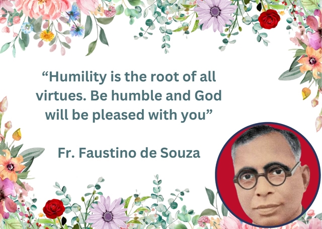 Fr Faustino De Souza was a man whose life mirrored the virtue of humility he frequently preached. His Pearls of wisdom for his sisters emphasised virtues like love, silence, divine providence, sacrifice, mortification and above all, humility. This cornerstone of his spirituality was most clearly demonstrated in his approach to criticism and adversity.