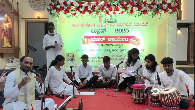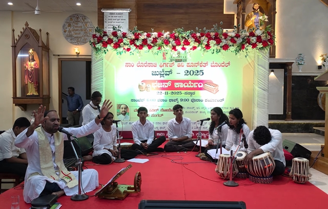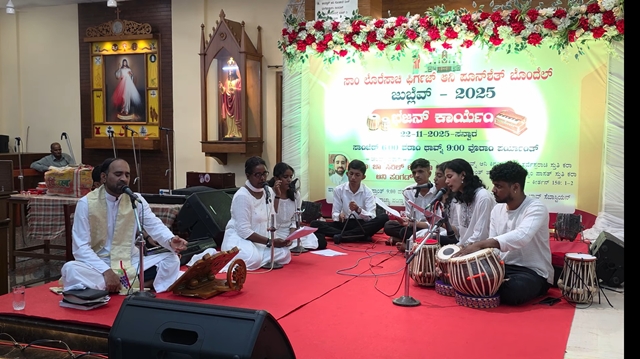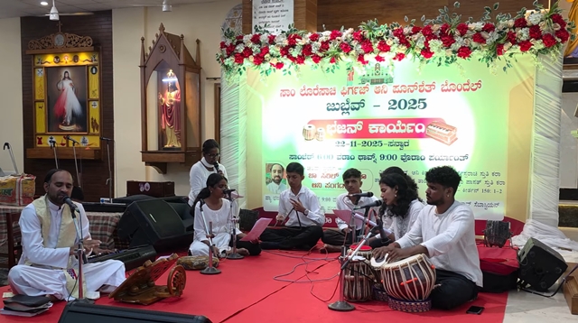 Mangalruu, Nov 24: St Lawrence Church & Shrine, Bondel, witnessed a truly grace-filled and spiritually uplifting evening of prayerful melodies conducted by Fr Cyril Lobo and his devoted team. The atmosphere was filled with divine peace as hundreds of faithful gathered to praise, worship, and experience the gentle whisper of God’s presence.