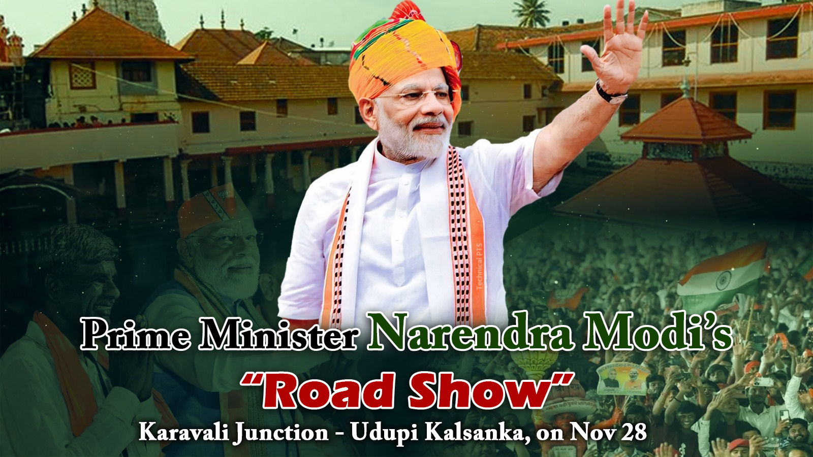 Barricades will be installed along one side of the road, and more than 30,000 people are expected to gather along the Bannanje–Kalsanka stretch to greet the prime minister. Citizens wishing to witness the road show have been requested to be present by 10.30 am on November 28.