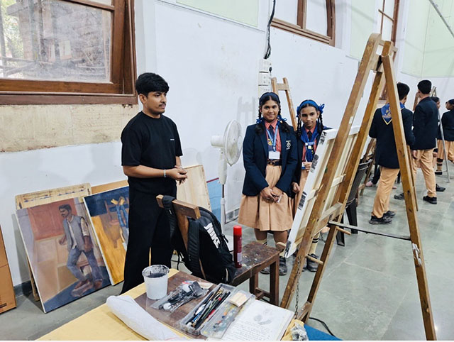 Ryan International-CBSE, Malad, Ryan International-CBSE, Nallasopara, Ryan International-CBSE, Ambarnath, Ryan International-CBSE, Sanpada, Ryan International, Kandivli, St Xavier’s-Andheri, St Xavier’s, Goregaon, Fr Agnelo, Malad, St Lawrence, Kandivali, St Lawrence, Borivali, St Xavier, Borivali, St Mary’s-Dahisar, St Thomas, Dahisar, St Mary’s-Mira Road, St Xavier’s, Kashigaon and St Xavier’s-Shanti Park had the opportunity to visit the Institute. They explored various departments, observed ongoing studio work, and interacted with faculty members who shared insights on painting, sculpture, printmaking and applied art.
