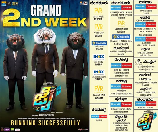 Following the success of his earlier ventures Girgit, Gamjaal, and Circus, Roopesh Shetty returned with ‘Jai’. The film is produced under the banners of RS Cinemas, Shoolin Films, and Mugrody Productions.