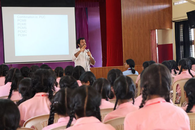 The second session was conducted by Alisha, an alumna of the institution, who shared her personal journey of choosing the right academic path. She explained the key parameters she considered while selecting a college and highlighted the strengths that make St Agnes PU College an excellent choice. She concluded by urging students to choose their stream based on their inclination, ability and capability.