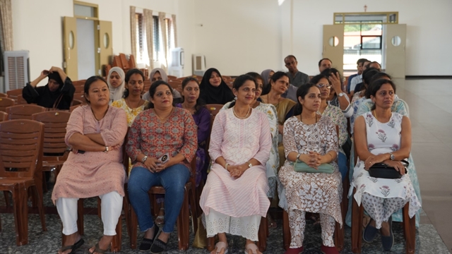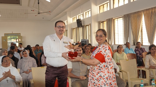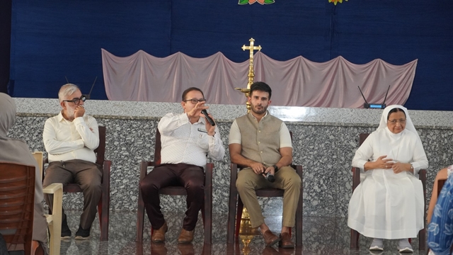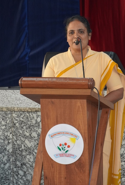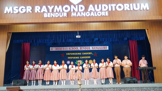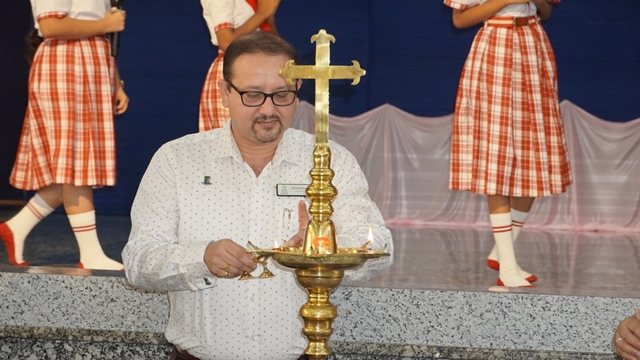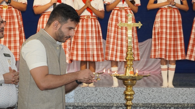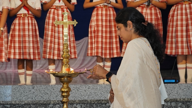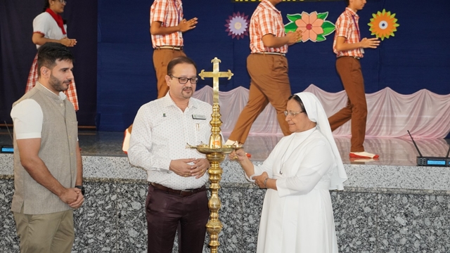 The event commenced with a solemn invocation and the ceremonial lighting of the sacred lamp. The correspondent, Sr Shaila, the principal, Sr Lourdes, along with the distinguished speakers—Dr R G D’Souza, Abhimanyu Tomar, and Collette Cabral, PTA vice-president—graced the occasion by jointly lighting the lamp. This symbolic act was followed by a melodious prayer song presented by the school choir, which imbued the gathering with a serene and reflective spirit.