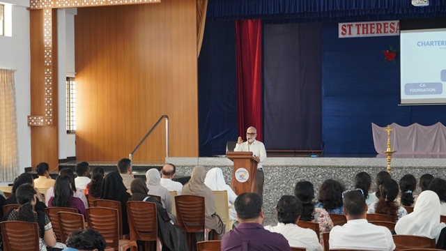 The final session of the day was delivered by Kiran Vasanth, who provided an in-depth exposition on Chartered Accountancy as a prestigious career option. He shared compelling insights into the CA journey, the challenges inherent in the profession, and the unwavering commitment required to succeed. His address inspired many students to view the commerce and CA pathway with renewed aspiration.