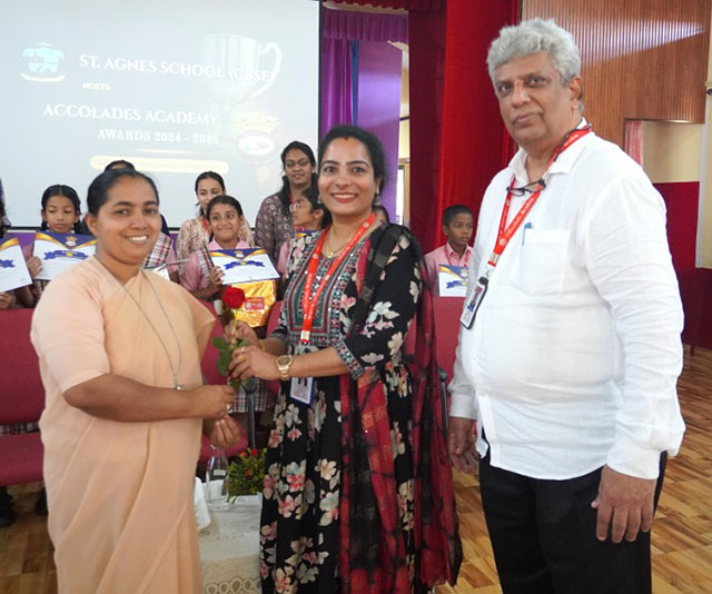 Mangaluru, Nov 28: The accolades public speaking academy hosted its annual awards ceremony on November 24 at St Agnes School (CBSE), Mangaluru, transforming the campus into a vibrant arena of confidence, courage, and expressive excellence. The ceremony celebrated the achievements of students who regularly participate in the academy’s weekly public speaking sessions conducted at the school—specialised classes designed to strengthen articulation, build stage presence and nurture clarity in communication.
