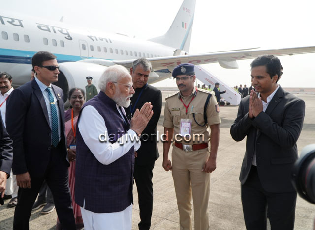 Mangaluru, Nov 28: Prime Minister Narendra Modi arrived at the Mangaluru International Airport on Friday to participate in a programme scheduled to be held in Udupi.